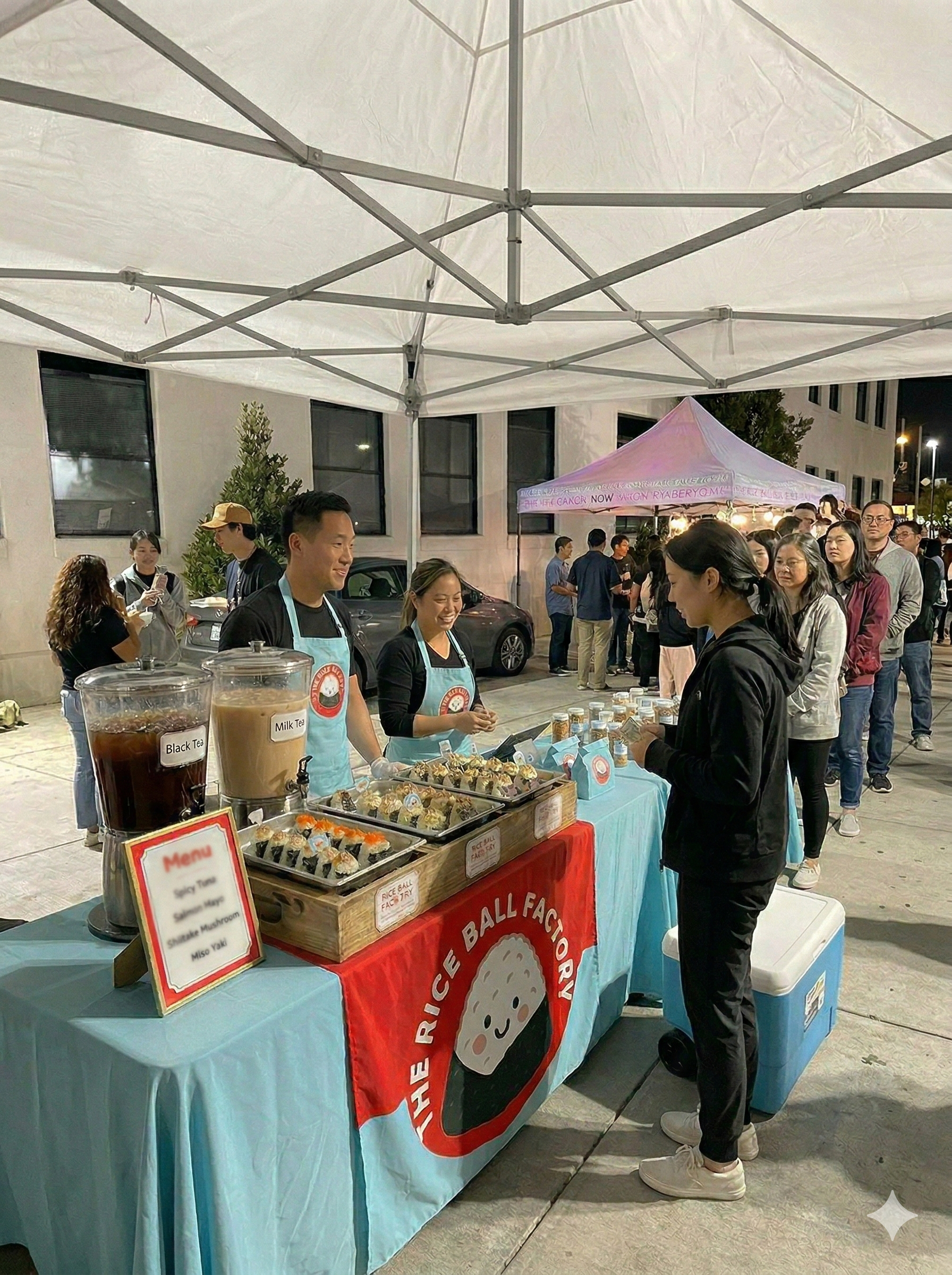 We are not a full-service catering company. We focus on one thing and do it really well: fresh, satisfying rice balls made for sharing.